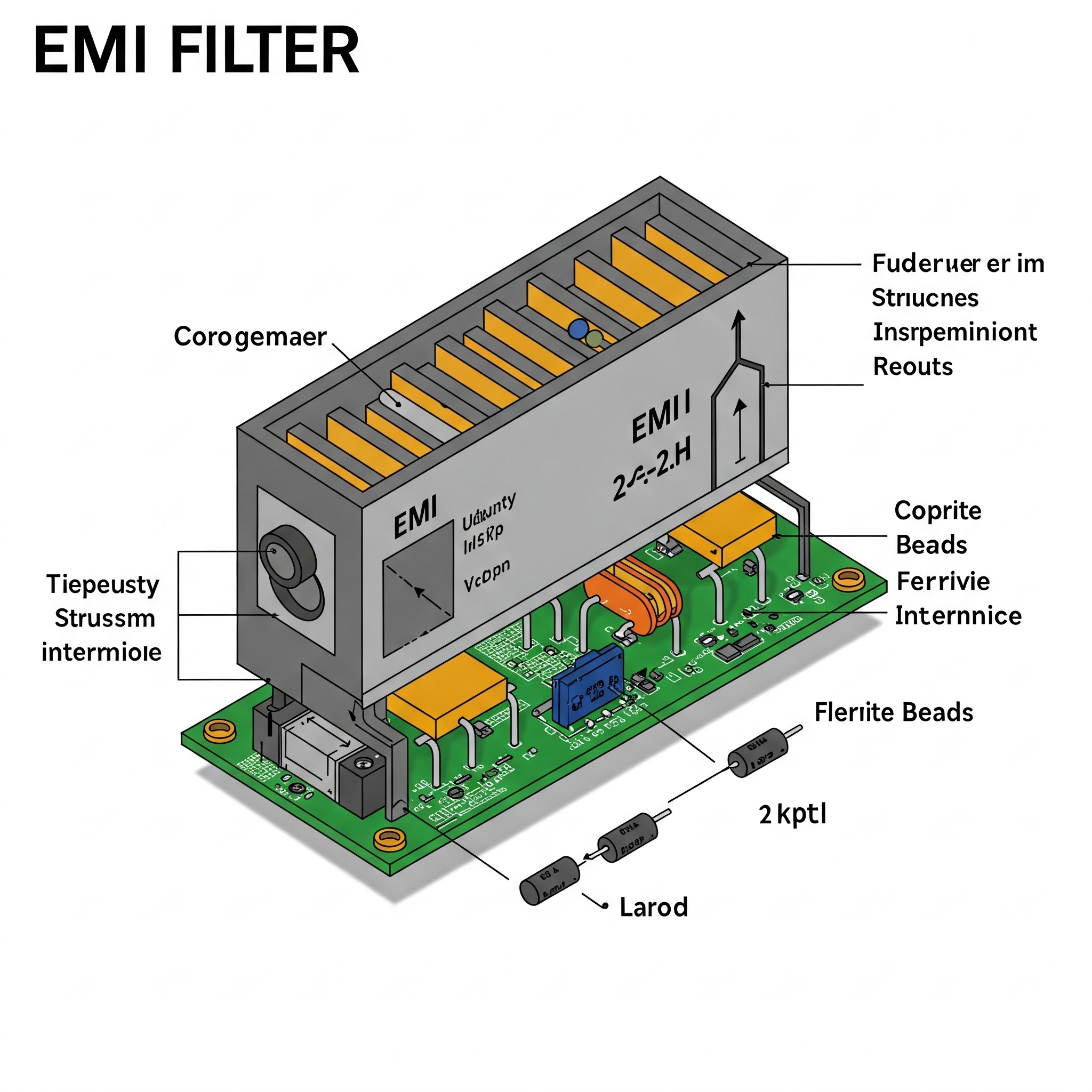 노이즈 필터(Noise Filter 또는 EMI 필터)는 전원 라인이나 신호 라인을 통해 전도되는 불필요한 전기적 노이즈(전자파 장해, EMI)를 억제하기 위해 사용되는 전자 부품입니다. 노이즈 필터는 장비 자체가 외부로 방출하는 노이즈를 줄여 전자파 적합성(EMC) 규격을 만족시키거나, 외부에서 유입되는 노이즈로 인해 장비가 오작동하는 것을 방지하는 두 가지 목적을 가집니다.